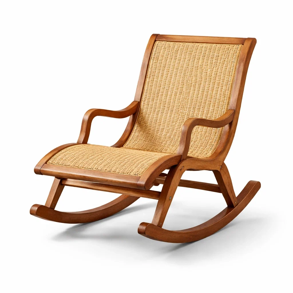 Fauteuil à bascule en bois et rotin naturel
