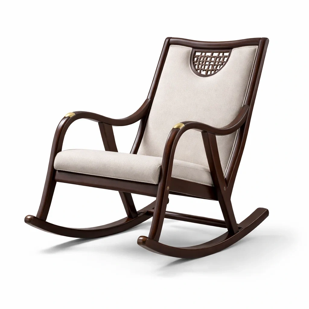 Fauteuil à bascule en bois brun avec tissu polyester beige