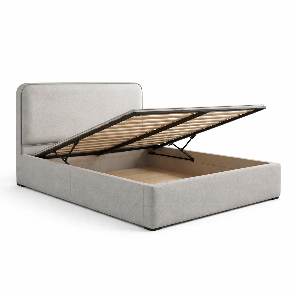 Lit coffre en tissu beige avec coffre et sommier à lattes 163x213x110 cm
