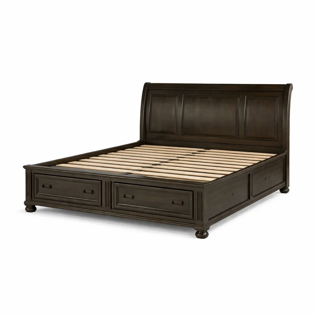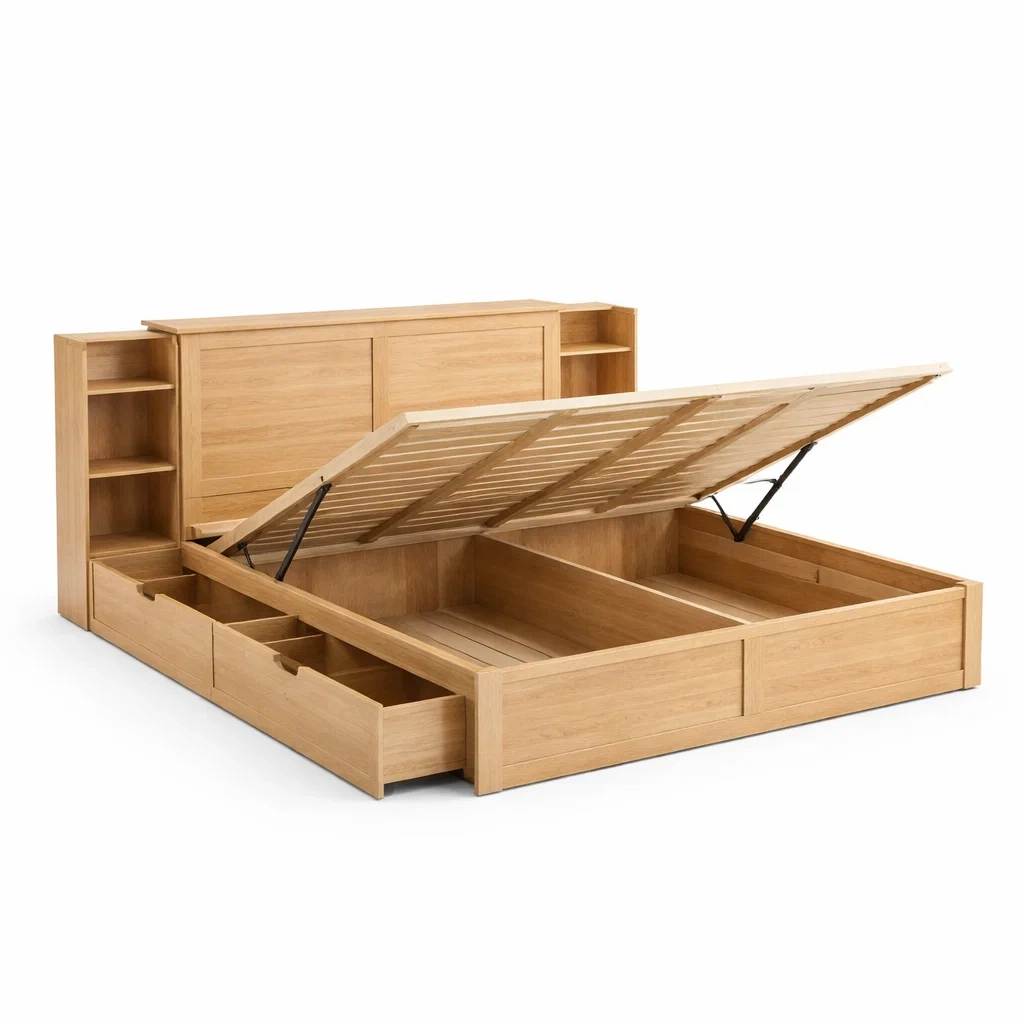 Lit coffre en bois massif de chêne avec tiroirs de rangement gris