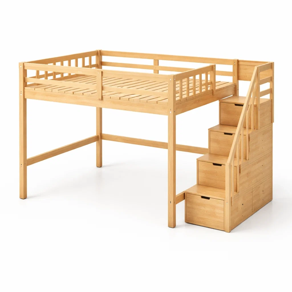Lit mezzanine en bois avec escaliers de rangement 198x97x119 cm