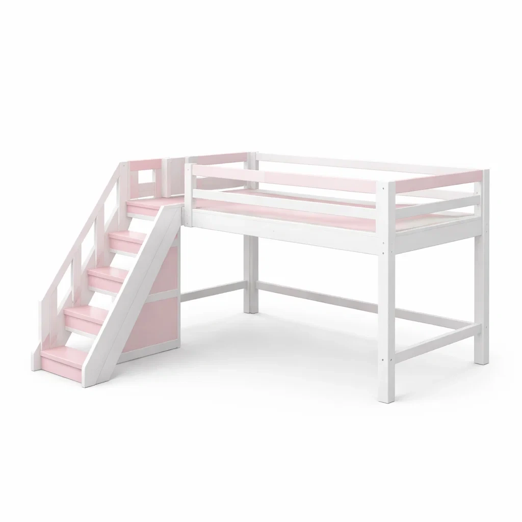 Design : Lit mezzanine avec barrière de sécurité et escalier intégré